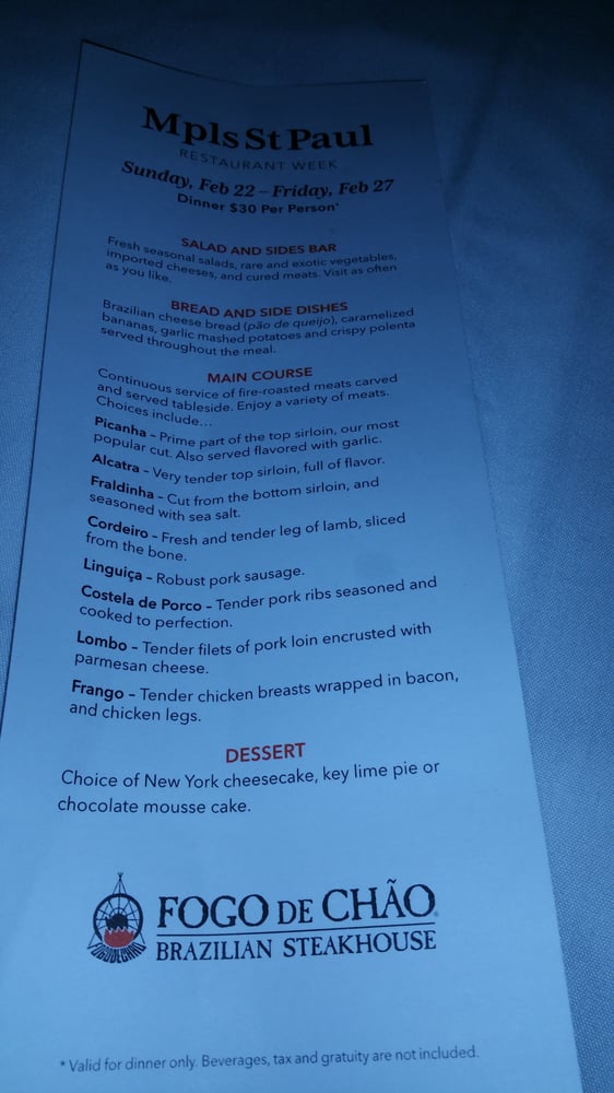 Fogo de Chão Brazilian Steakhouse Minneapolis Menu (Update 2025)